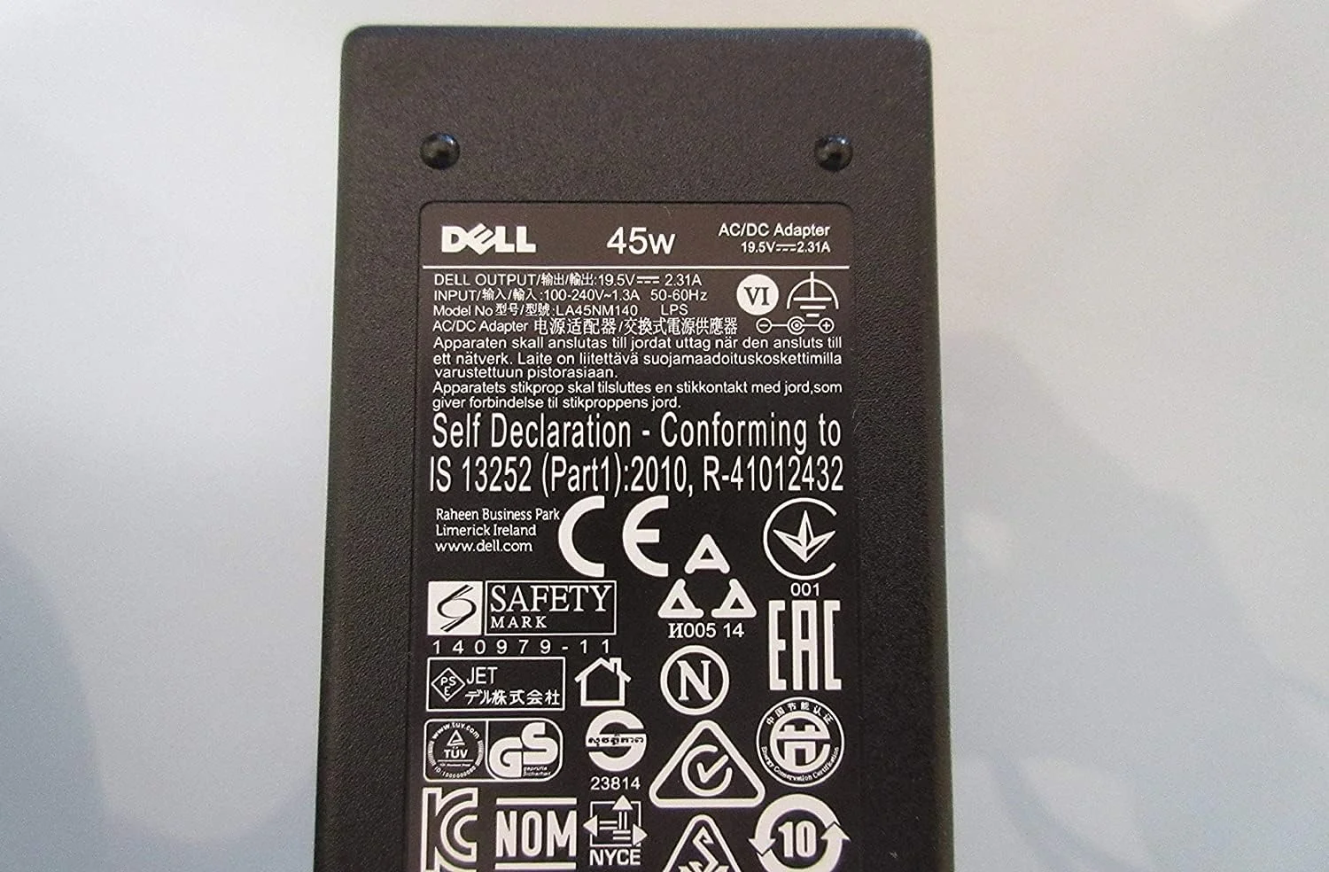 • Output power: 45W | Output: 19.5V ⎓ 2.31A | Pin size: 4.5 mm