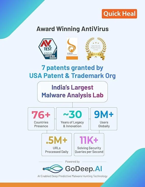 • Quick Heal Total Security for 1 User | 1 Year – AI-based protection for Windows PCs